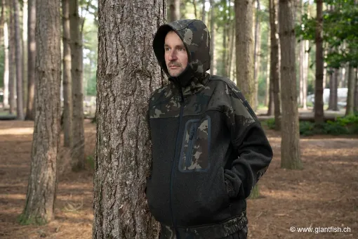 Grazie alla costruzione in pile spesso abbinata a una fodera termica interna, questo hoody con zip accumula il calore e lo distribuisce in modo omogeneo su petto, braccia e schiena. Il taglio regular garantisce un buon compromesso tra comfort e libertà di movimento, sia che tu stia lanciando, in lotta con un pesce o semplicemente seduto sul tuo lettino da pesca.