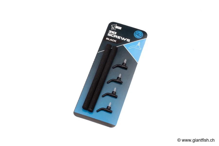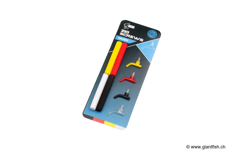 Il Kit Zig Screw NASH è composto da zig kickers dotati di una vite per esca integrata. Questa progettazione permette di avvitare direttamente l'esca scelta, che sia foam, plastica, sughero o pop-up, ottenendo un montaggio pulito e perfettamente allineato con l'amo. Il sistema è stato studiato per resistere alle sollecitazioni della pesca moderna della carpa, restando al contempo discreto e funzionale.