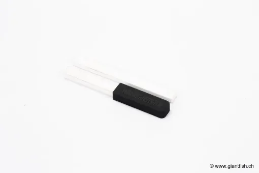 Ogni kit comprende due pietre di affilatura selezionate per la loro regolarità e durata, accompagnate da un manico ergonomico. Il manico removibile consente di fissare rapidamente la pietra scelta, modificare l'angolo di lavoro e adattarsi alla dimensione dell'amo, per un controllo totale dell'affilatura e una finitura perfettamente gestita.