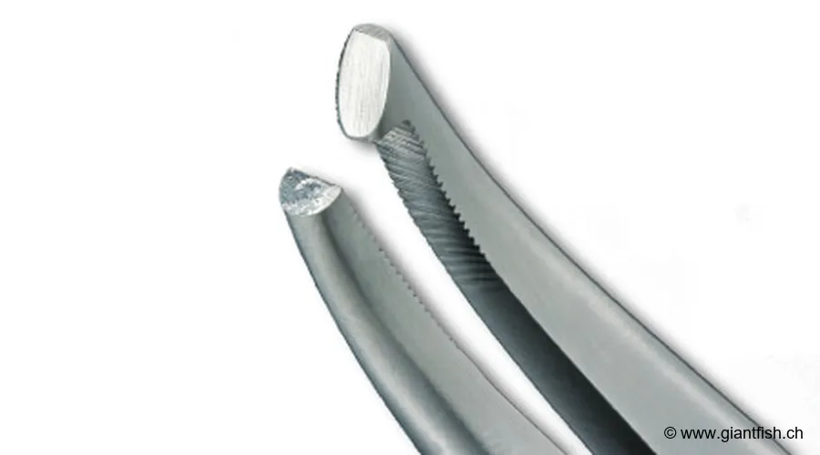 Risposta: Se utilizzata correttamente sull'area dell'ardiglione, la pinza consente di ottenere un profilo liscio senza deteriorare la punta, mantenendo un'ottima capacità di penetrazione.