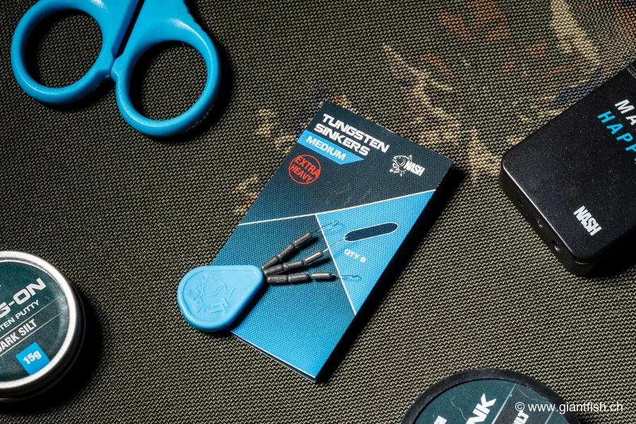 La forte densità del tungsteno offre anche il vantaggio di ridurre il numero di accessori sulla lenza. Dove sarebbero necessari diversi piombi fessurati, spesso basta un unico NASH Tungsten Sinker per ottenere lo stesso effetto di zavorra. Si mantiene così un montaggio più pulito, più aerodinamico in fase di lancio e più ordinato al momento dell'appoggio sul fondo. La possibilità di combinarlo con pasta piombata aumenta ulteriormente la capacità di regolazione senza cambiare l'intero terminale.