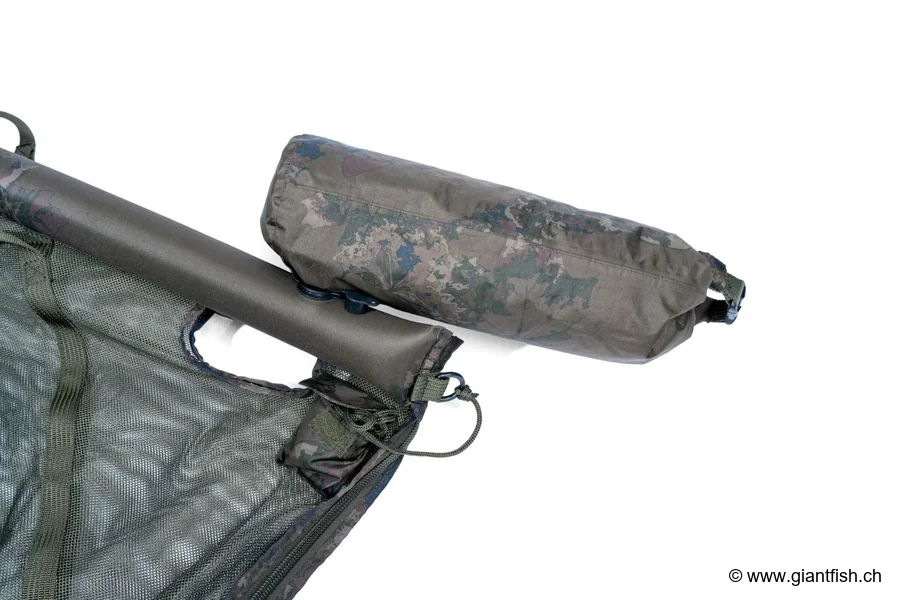 Questo sistema di ritenuta si distingue per il minimo ingombro una volta ripiegato. Sgonfiando semplicemente i tubi, l'imbragatura si ripone nella sua stessa sacca, rendendola una soluzione ideale per i pescatori mobili, le sessioni rapide o gli approcci leggeri con poco materiale. In questo modo si ottiene un sistema di ritenuta per carpe compatto e performante senza sacrificare la protezione del pesce.