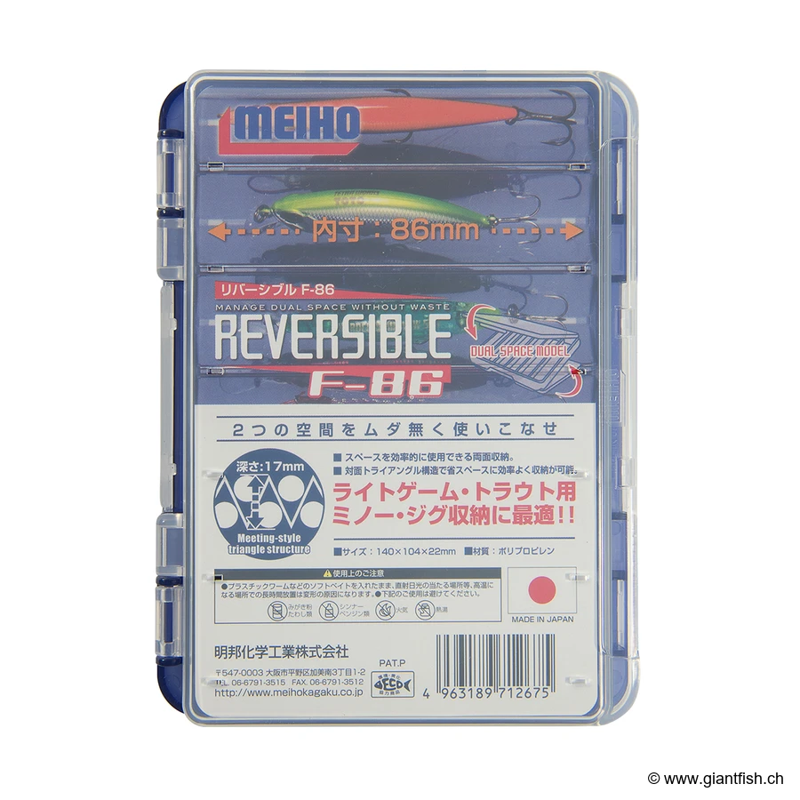 scatola di stoccaggio reversibile Reversible F86 significa optare per un'organizzazione ottimale, un evidente risparmio di tempo e una protezione accurata delle tue preziose esche da nuoto. Un indispensabile che presto non potrai più fare a meno per uscite di pesca di successo garantite.