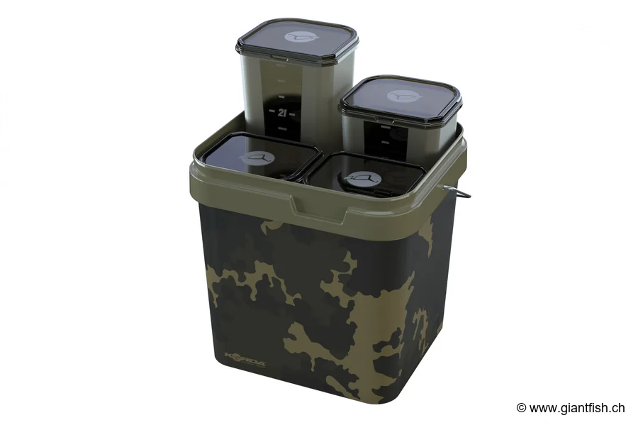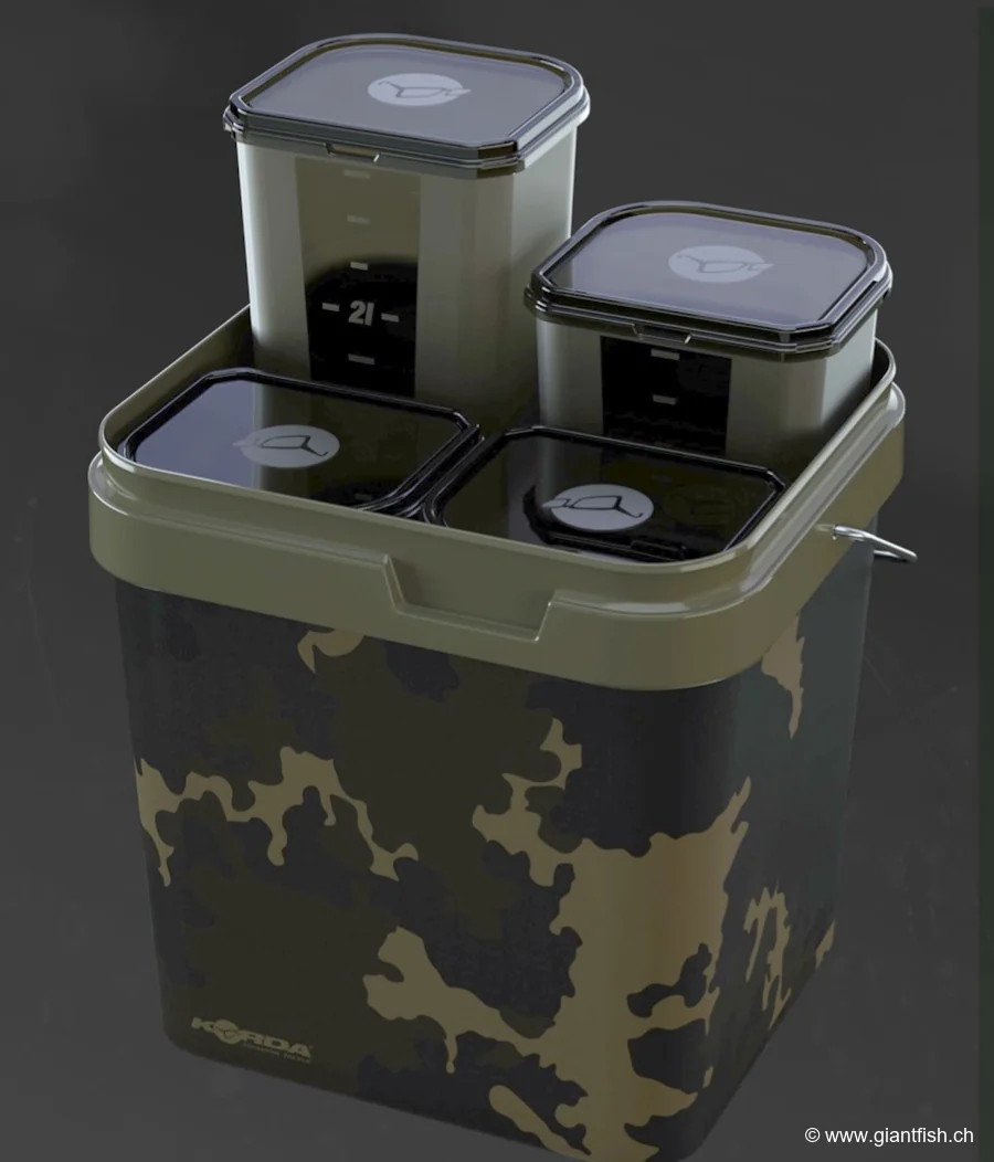 secchio di stoccaggio per esche rivoluzionario, progettato appositamente per i pescatori esigenti alla ricerca di prestazioni e organizzazione sul campo. Realizzato dal rinomato marchio Korda, questo sistema ingegnoso trasforma il modo di trasportare, conservare e distribuire le esche durante tutte le vostre uscite di pesca, che siate principianti o esperti.